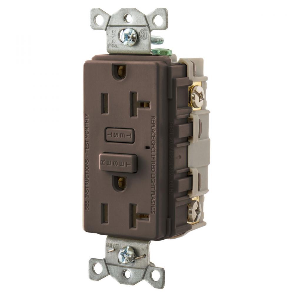 Wiring Device-Kellems Hubbell-PRO GF20 Duplex Standard GFCI Receptacle, 125 VAC, 20 A, 2 Poles, 3 Wires, Brown