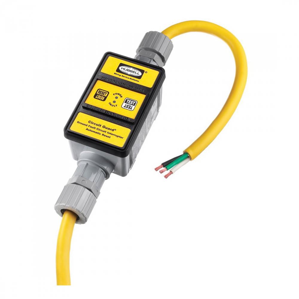 Wiring Device-Kellems Circuit Guard® GFP2313 Auto High Amperage Portable GFCI Line Cord, 240 VAC, (3) 10 AWG Copper Plated Conductor, 50 ft L