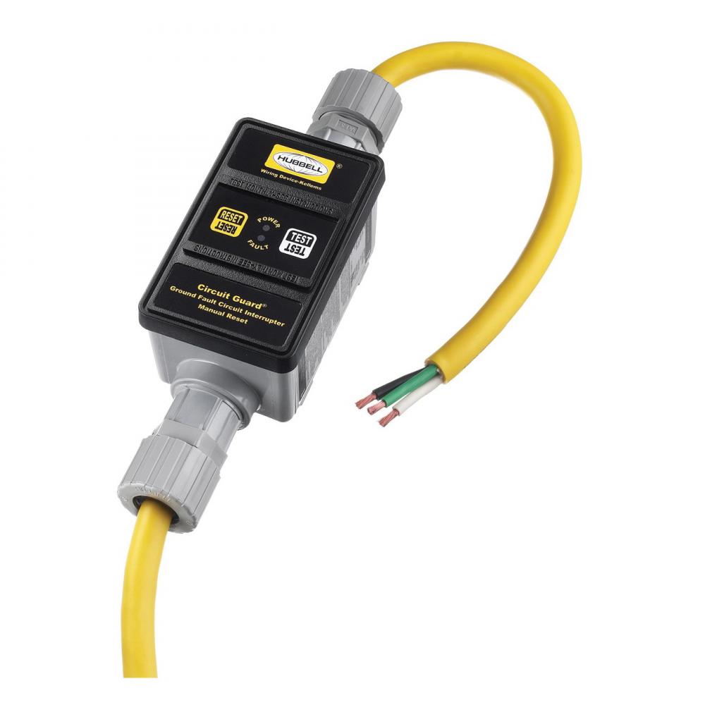 Wiring Device-Kellems Circuit Guard® GFP4305 3-Phase High Amperage Manual Portable GFCI Line Cord, 120/208 VAC, (5) 10 AWG Copper Plated Conductor, 2 ft L