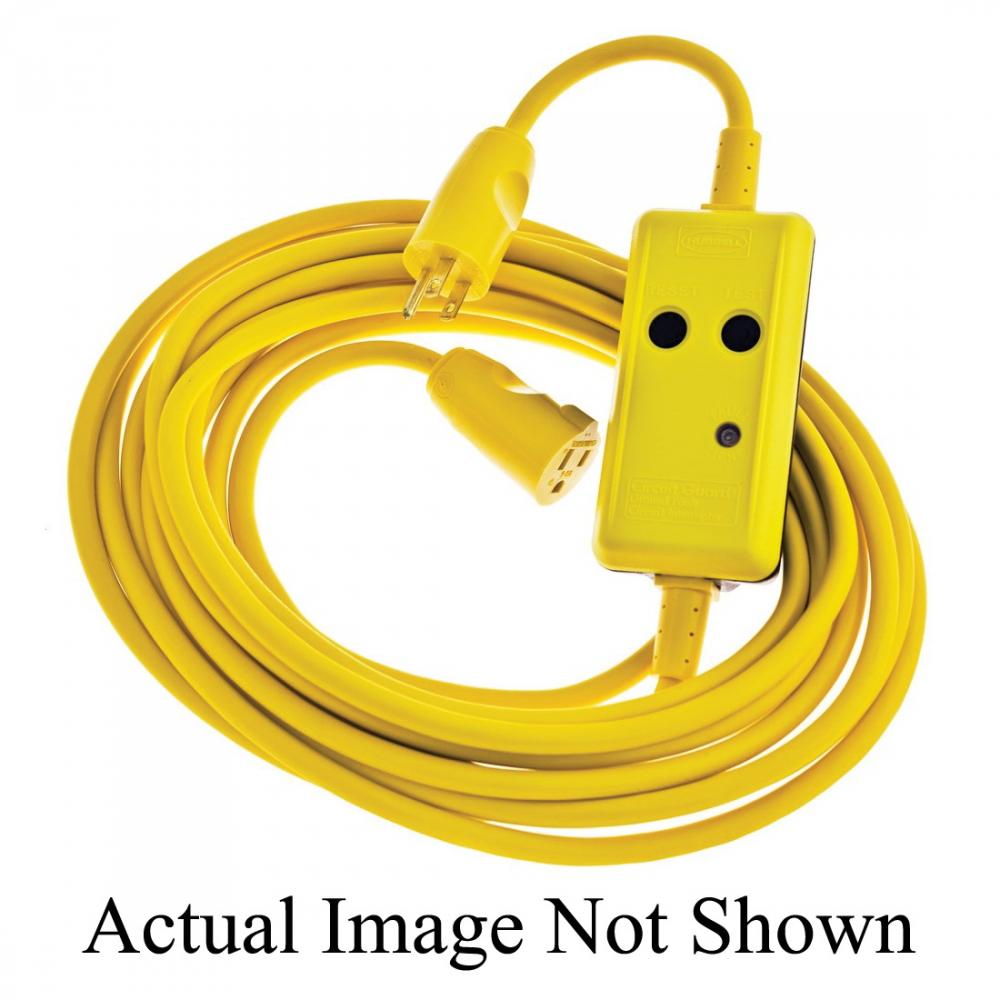 Wiring Device-Kellems Circuit Guard® GFP50C15WM Extra Heavy Duty Fabricated Manual Reset Portable Straight Blade GFCI Line Cord With Male/Female End, Elastogrip® Watertight Straight Blade, 120 VAC, (3) 14 AWG Copper Conductor, 50 ft L