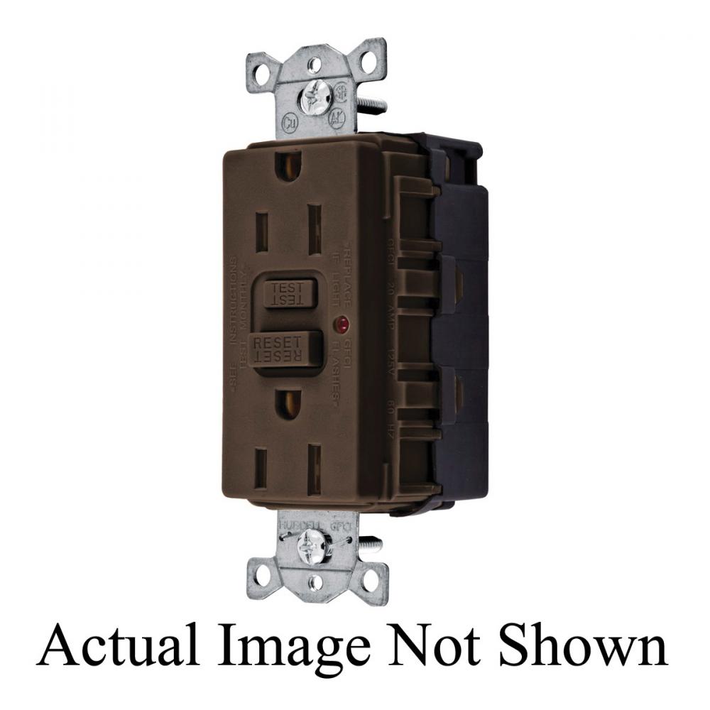 Wiring Device-Kellems SNAPConnect® GFR15SNAP Decorator Duplex Standard Straight Blade Tamper/Weather Resistant GFCI LED Receptacle With Auto Grounding, 125 VAC, 15 A, 2 Poles, 3 Wires, Brown