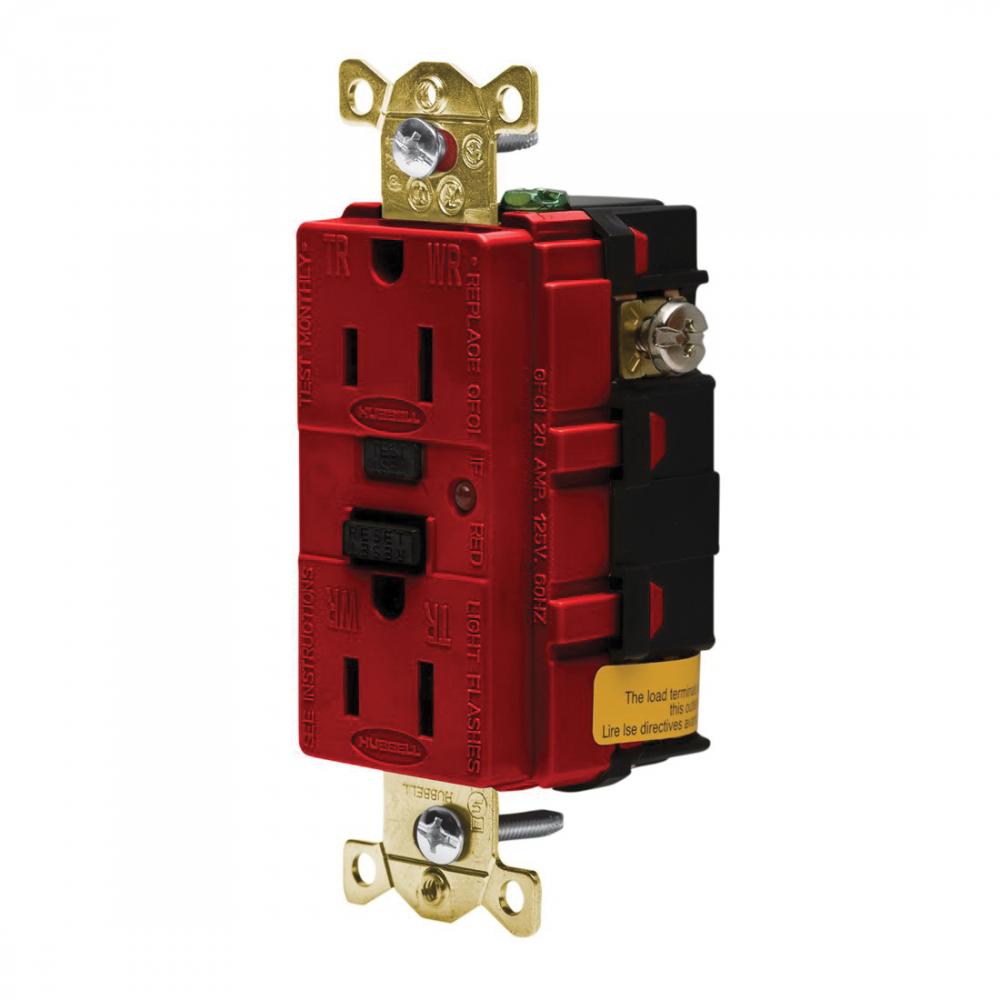 Wiring Device-Kellems Circuit Guard® GFR5262RTR Grounding Tamper Resistant GFCI Receptacle, 125 VAC, 15 A, 2 Poles, 3 Wires, Red