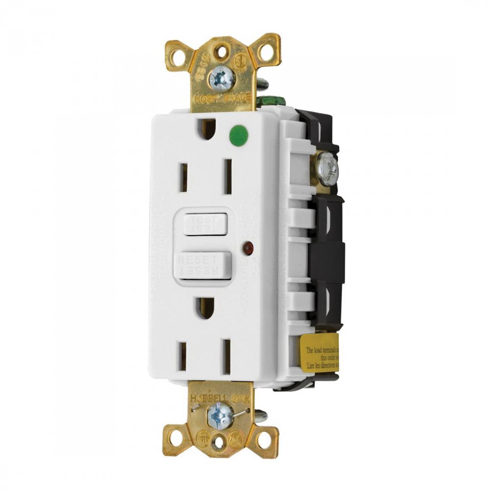 Wiring Device-Kellems GFR8200HWLU Grounding Heavy Duty GFCI Receptacle With LED Indicator, 125 VAC, 15 A, 2 Poles, 3 Wires, White