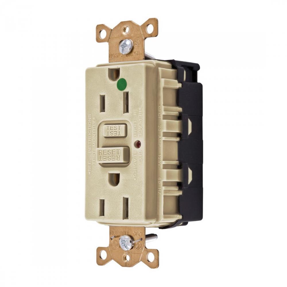 Wiring Device-Kellems SNAPConnect® GFR8200SNAPI 1-Phase Decorator Duplex Straight Blade Tamper/Weather Resistant Standard GFCI Receptacle, 125 VAC, 15 A, 2 Poles, 3 Wires, Ivory