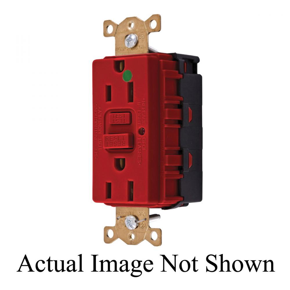 Wiring Device-Kellems SNAPConnect® GFR8200SNAPR Decorator Duplex Standard Straight Blade Tamper/Weather Resistant GFCI LED Receptacle With Auto Grounding, 125 VAC, 15 A, 2 Poles, 3 Wires, Red