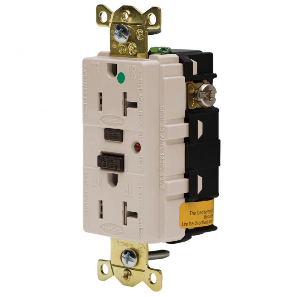 Wiring Device-Kellems GFR8300LATR Straight Blade Tamper Resistant GFCI Receptacle With LED Indicator, 125 VAC, 20 A, 2 Poles, 3 Wires, Light Almond