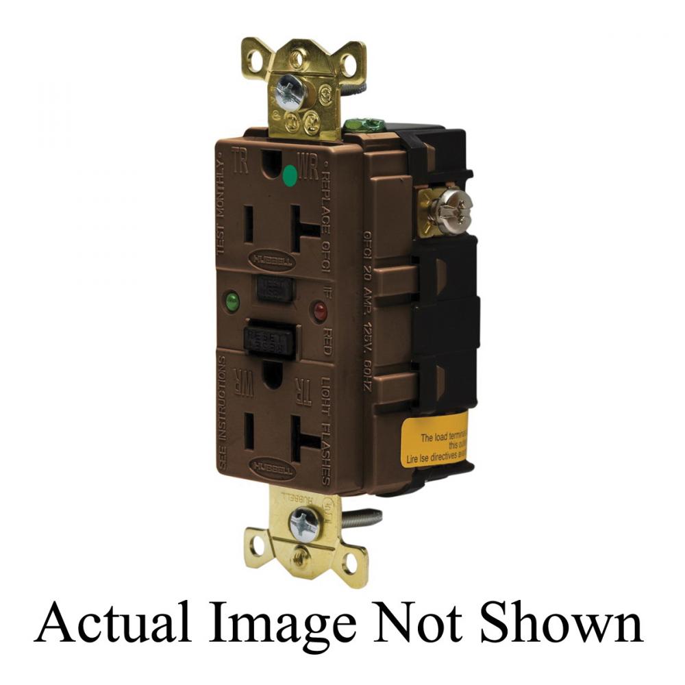 Wiring Device-Kellems AUTOGUARD® Style Line GFR8300SG Decorator Duplex Heavy Duty Standard Self-Test Tamper/Weather Resistant GFCI Receptacle With LED Indicator, 125 VAC, 20 A, 2 Poles, 3 Wires, Brown