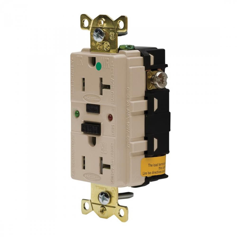 Wiring Device-Kellems GFR8300SGLA 1-Phase Decorator Duplex Straight Blade Tamper Resistant Standard GFCI Receptacle, 125 VAC, 20 A, 2 Poles, 3 Wires, Light Almond