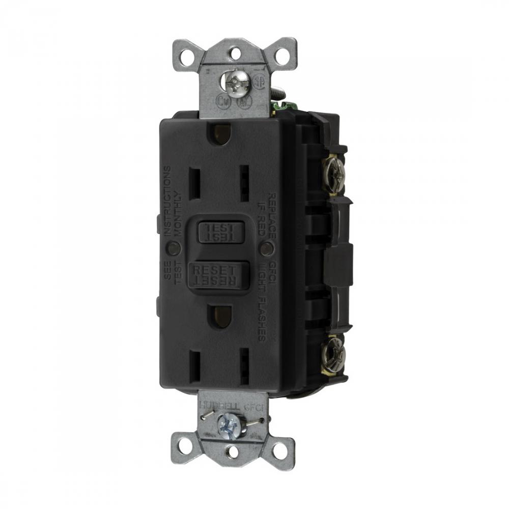 Wiring Device-Kellems AUTOGUARD® Style Line GFRST15BKBULK Decorator Duplex Heavy Duty Standard Straight Blade Self-Test GFCI Receptacle, 125 VAC, 15 A, 2 Poles, 3 Wires, Black