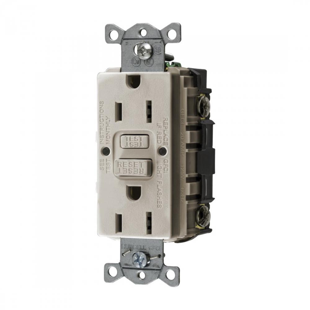 Wiring Device-Kellems AUTOGUARD® Style Line GFRST15LAMP Decorator Duplex Heavy Duty Standard Straight Blade Self-Test GFCI Receptacle With Medium Sized Plate, 125 VAC, 15 A, 2 Poles, 3 Wires, Light Almond
