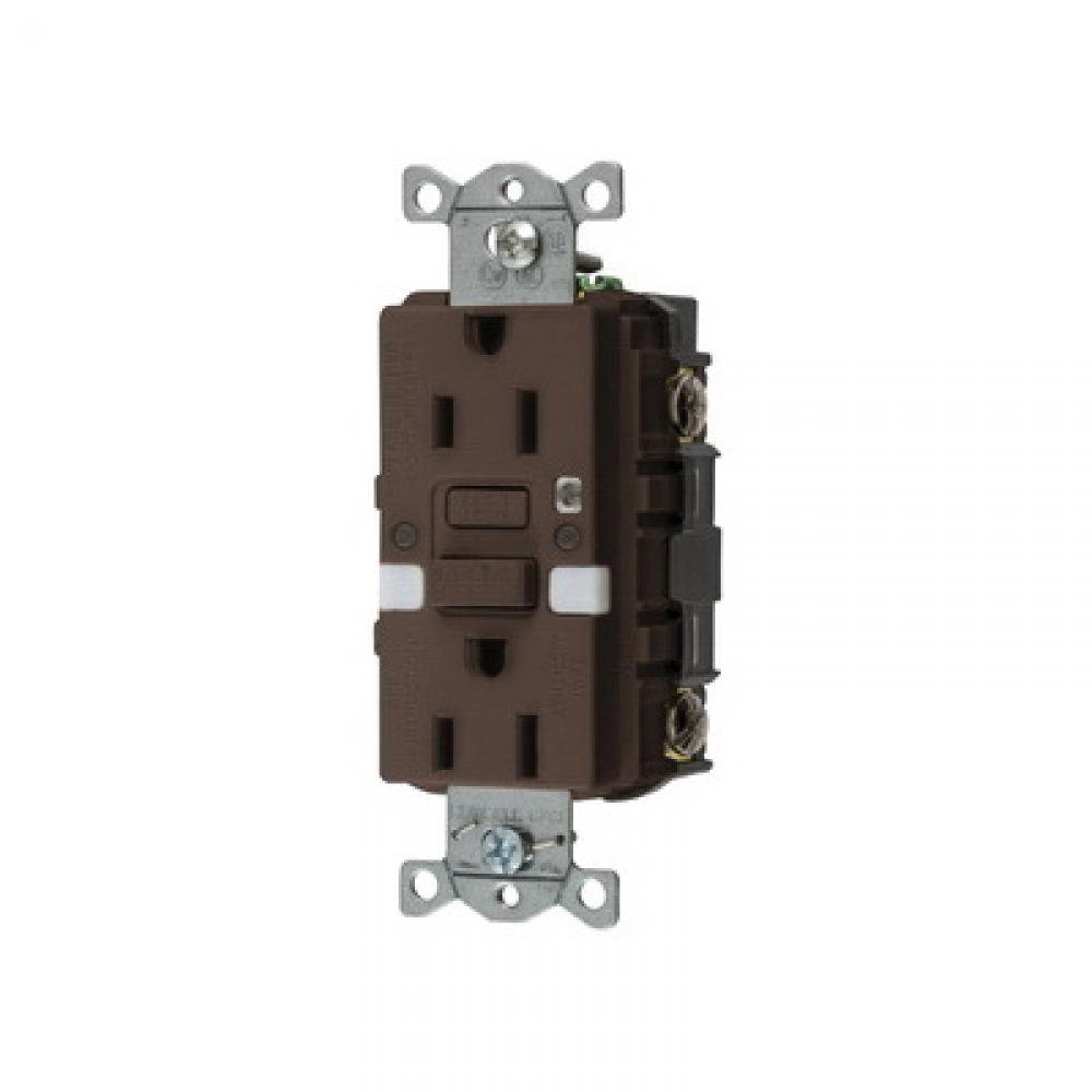 Wiring Device-Kellems AUTOGUARD® Style Line GFRST15NL Decorator Duplex Grounding Heavy Duty Standard Self-Test Straight Blade GFCI Receptacle With Two LED Nightlight, 125 VAC, 15 A, 2 Poles, 3 Wires, Brown