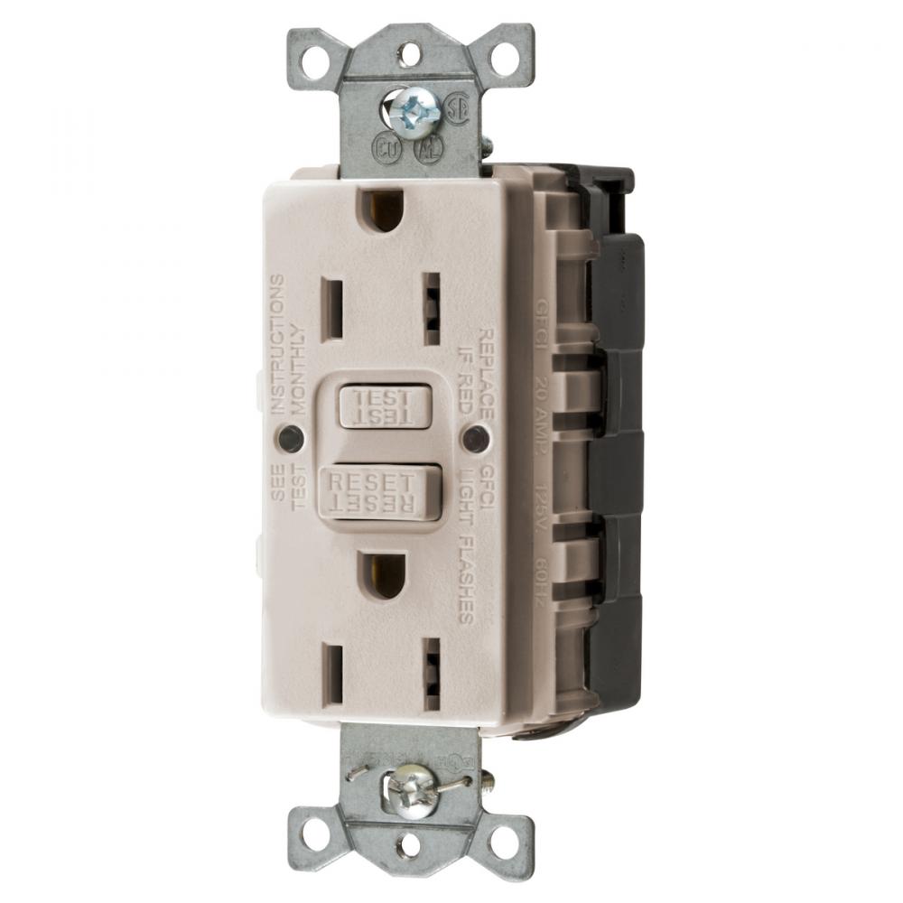 Wiring Device-Kellems SNAPConnect® StyleLine® GFRST15SNAPLANA Duplex Heavy Duty Self-Test GFCI Receptacle, 125 VAC, 15 A, 2 Poles, 3 Wires, Light Almond