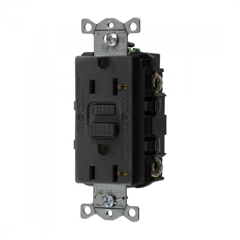 Wiring Device-Kellems AUTOGUARD® Style Line GFRST20BKU Decorator Duplex Heavy Duty Self-Test Straight Blade GFCI Receptacle, 125 VAC, 20 A, 2 Poles, 3 Wires, Black