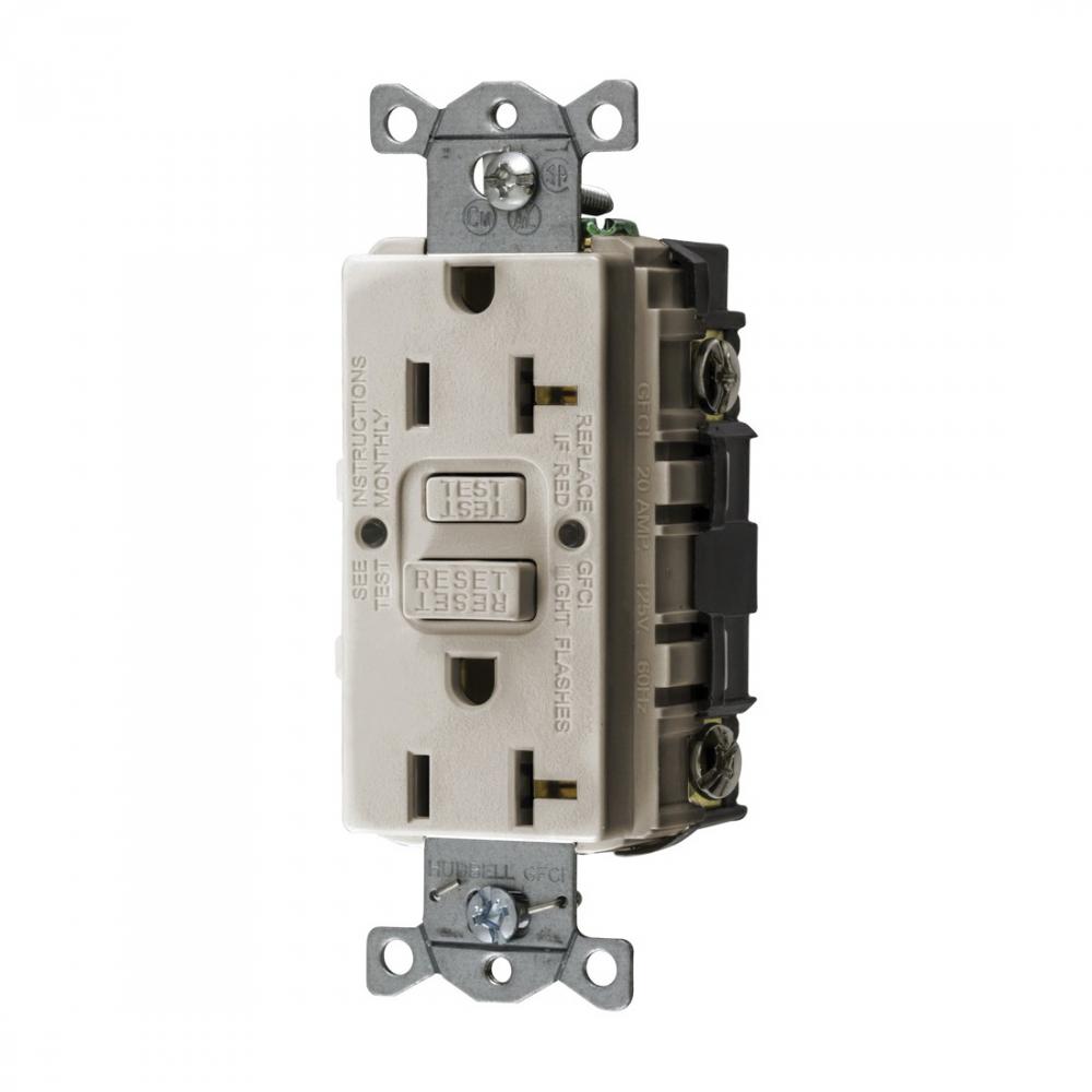 Wiring Device-Kellems AUTOGUARD® Style Line GFRST20LAU Decorator Duplex Heavy Duty Self-Test Straight Blade GFCI Receptacle, 125 VAC, 20 A, 2 Poles, 3 Wires, Light Almond