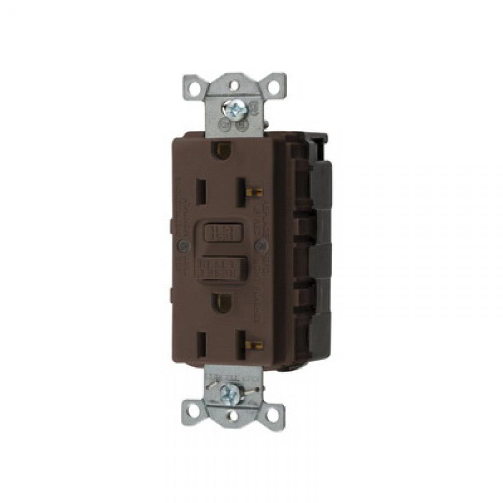Wiring Device-Kellems SNAPConnect® StyleLine® GFRST20SNAP Decorator Duplex Heavy Duty Standard Self-Test GFCI Receptacle, 125 VAC, 20 A, 2 Poles, 3 Wires, Brown