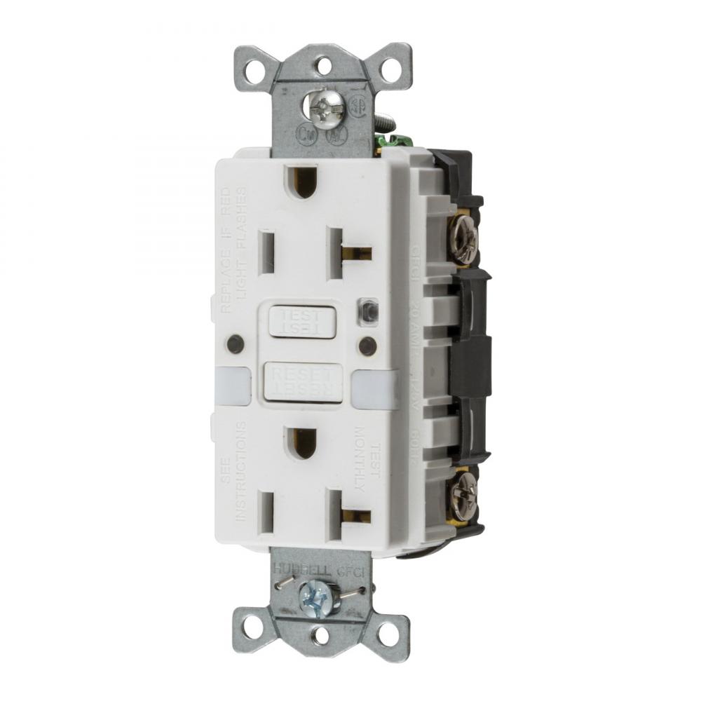 Wiring Device-Kellems AUTOGUARD® Style Line GFRST20WNL Decorator Duplex Grounding Heavy Duty Standard Self-Test Straight Blade GFCI Receptacle With Two LED Nightlight, 125 VAC, 20 A, 2 Poles, 3 Wires, White