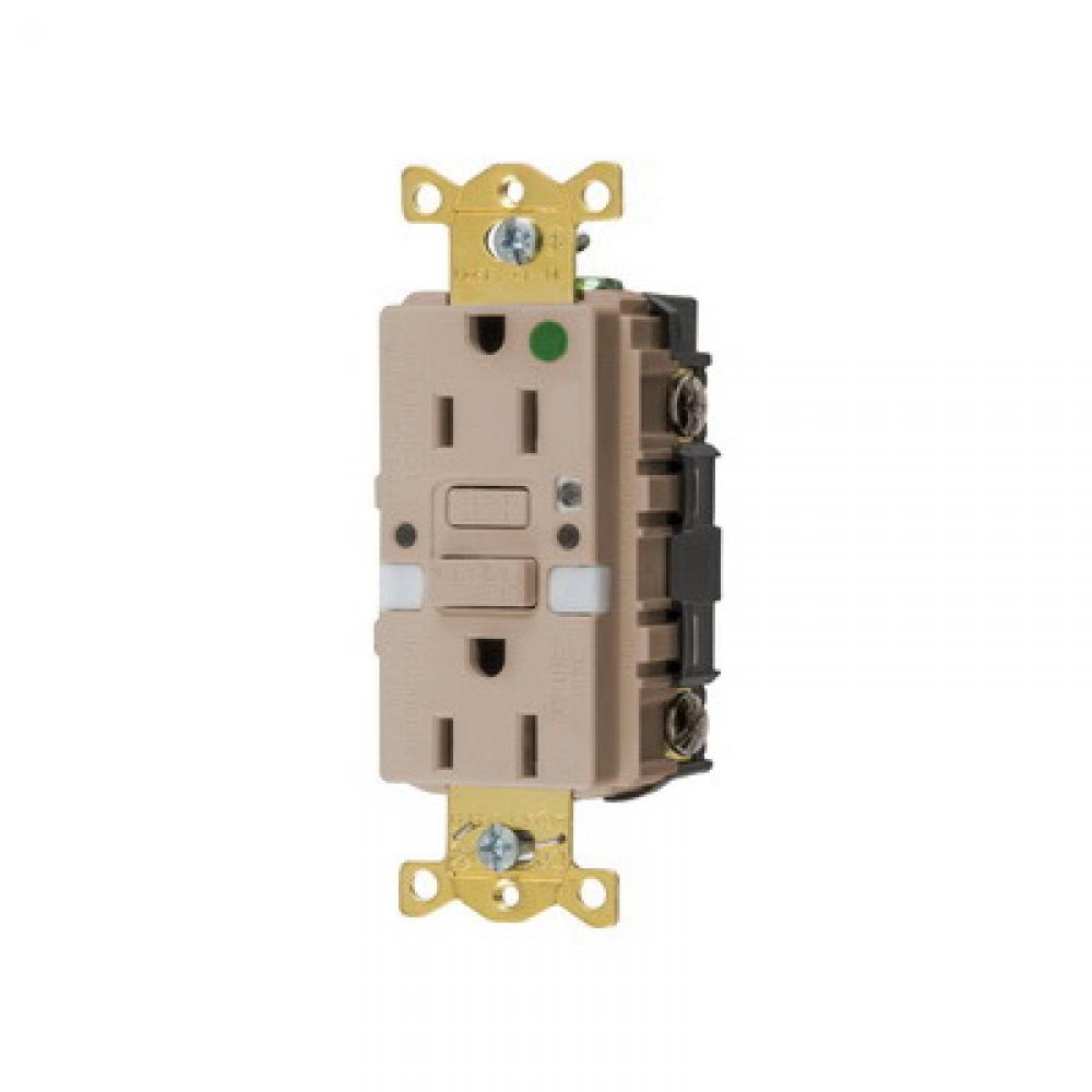Wiring Device-Kellems AUTOGUARD® Style Line GFRST82ALNL Grounding Heavy Duty Standard Self-Test Straight Blade GFCI Receptacle With Two LED Nightlight, 125 VAC, 15 A, 2 Poles, 3 Wires, Almond