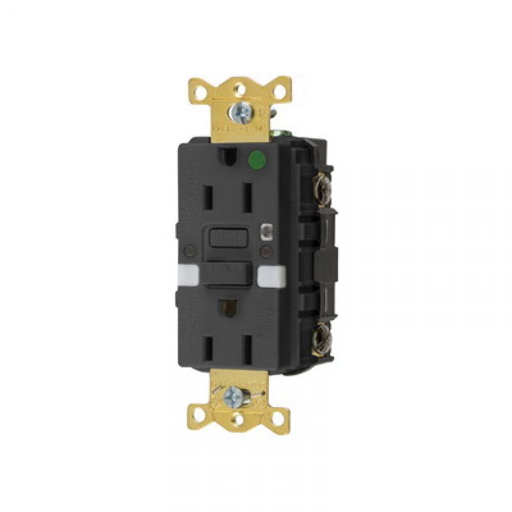 Wiring Device-Kellems AUTOGUARD® Style Line GFRST82BKNL Grounding Heavy Duty Standard Self-Test Straight Blade GFCI Receptacle With Two LED Nightlight, 125 VAC, 15 A, 2 Poles, 3 Wires, Black