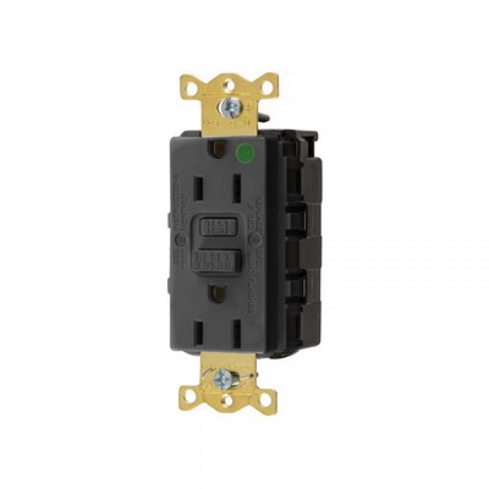 Wiring Device-Kellems SNAPConnect® StyleLine® GFRST82SNAPBK Self-Test Straight Blade Standard GFCI Receptacle, 125 VAC, 15 A, 2 Poles, 3 Wires, Black