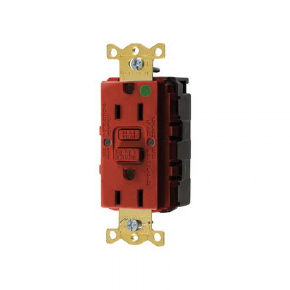 Wiring Device-Kellems SNAPConnect® StyleLine® GFRST82SNAPR Self-Test Straight Blade Standard GFCI Receptacle, 125 VAC, 15 A, 2 Poles, 3 Wires, Red