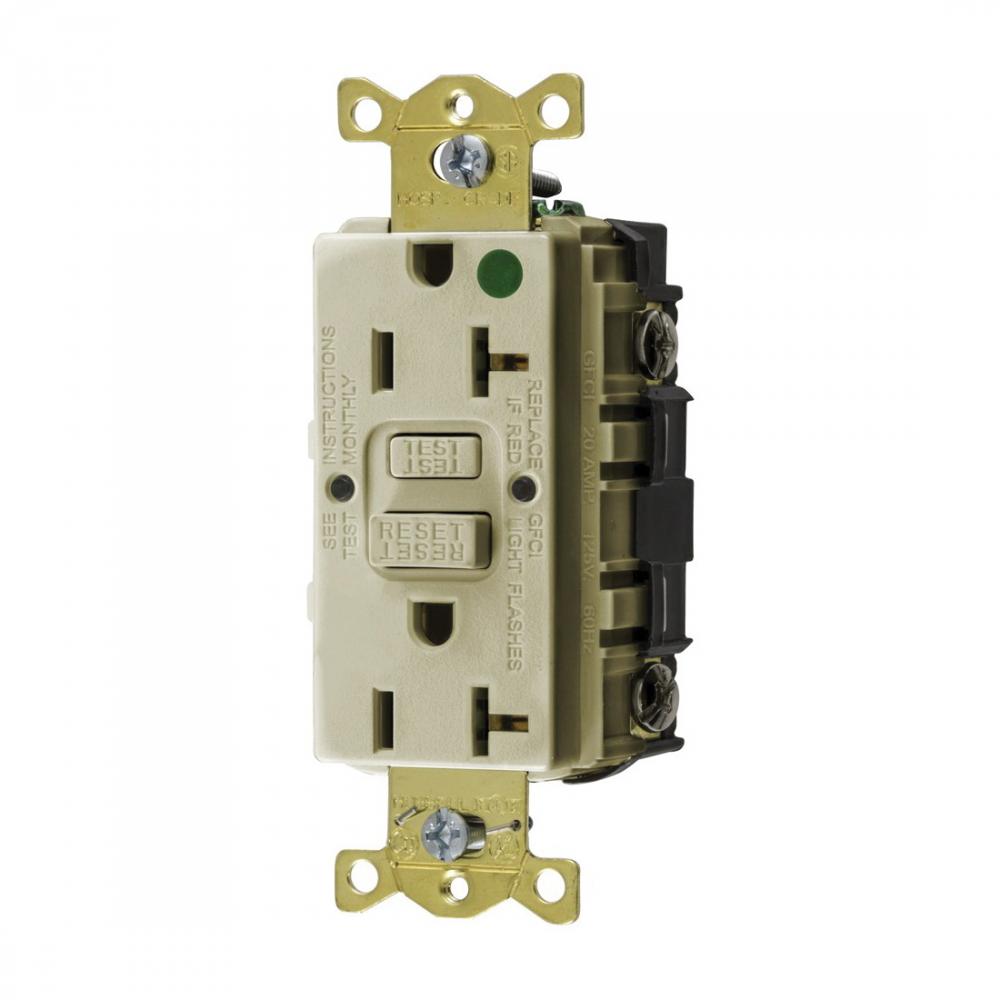 Wiring Device-Kellems AUTOGUARD® Style Line GFRST83IU Standard Straight Blade Self-Test GFCI Receptacle, 125 VAC, 20 A, 2 Poles, 3 Wires, Ivory
