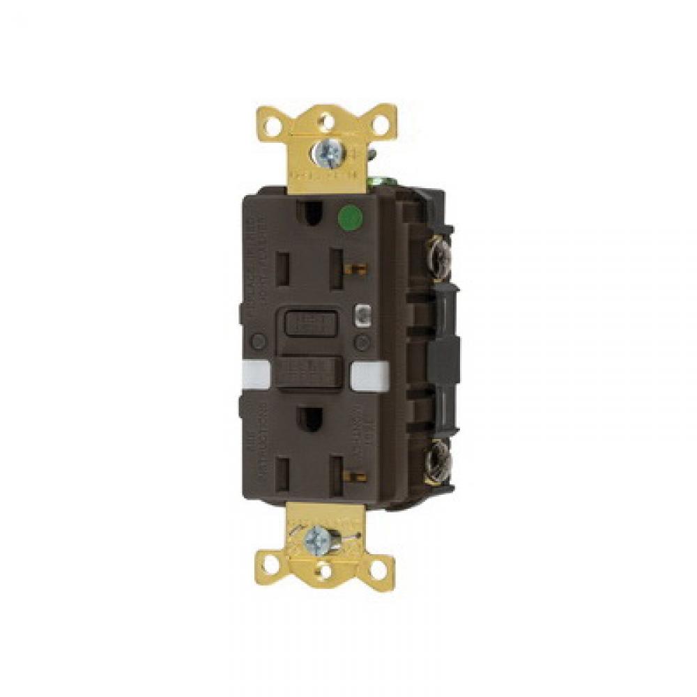 Wiring Device-Kellems AUTOGUARD® Style Line GFRST83NL Grounding Heavy Duty Standard Self-Test Straight Blade GFCI Receptacle With Two LED Nightlight, 125 VAC, 20 A, 2 Poles, 3 Wires, Brown