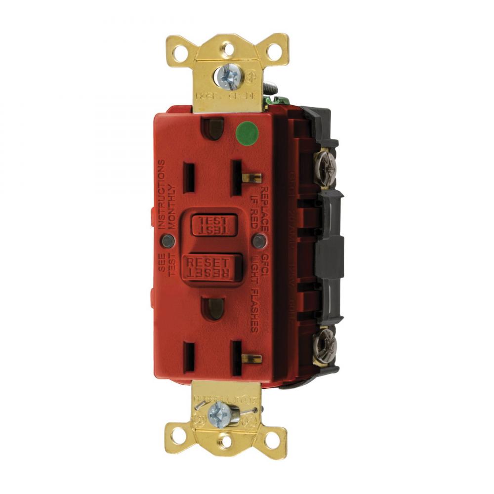 Wiring Device-Kellems AUTOGUARD® Style Line GFRST83R Decorator Duplex Self-Test Standard Straight Blade GFCI Receptacle, 125 VAC, 20 A, 2 Poles, 3 Wires, Red
