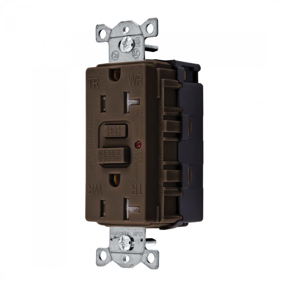 Wiring Device-Kellems SNAPConnect® GFTR20SNAPNA Heavy Duty Self-Grounding Staple Tamper/Weather Resistant GFCI Receptacle, 125 VAC, 20 A, 2 Poles, 3 Wires, Brown