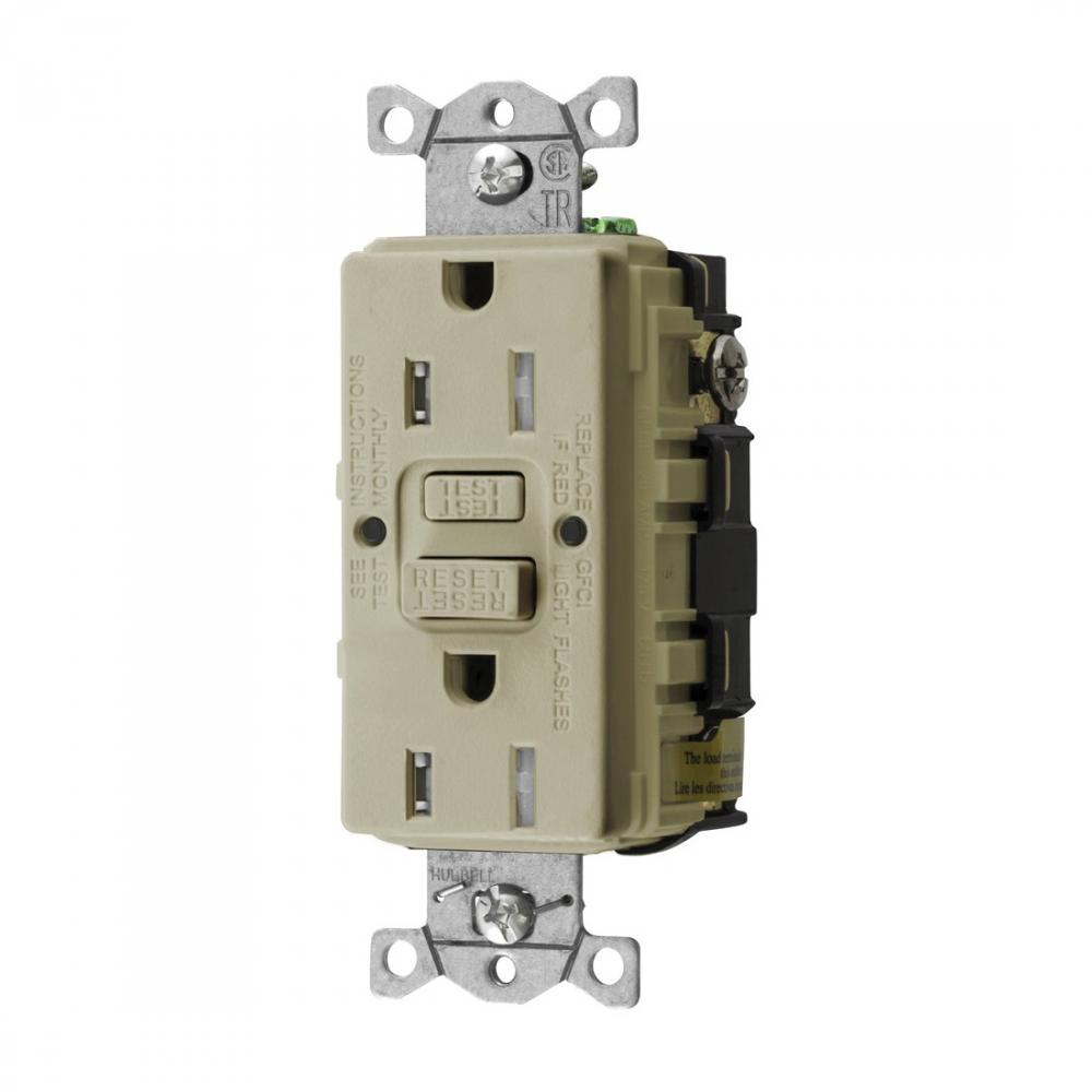 Wiring Device-Kellems AUTOGUARD® Style Line GFTRST15I3 Decorator Duplex Heavy Duty Standard Straight Blade Self-Test Tamper Resistant GFCI Receptacle, 125 VAC, 15 A, 2 Poles, 3 Wires, Ivory
