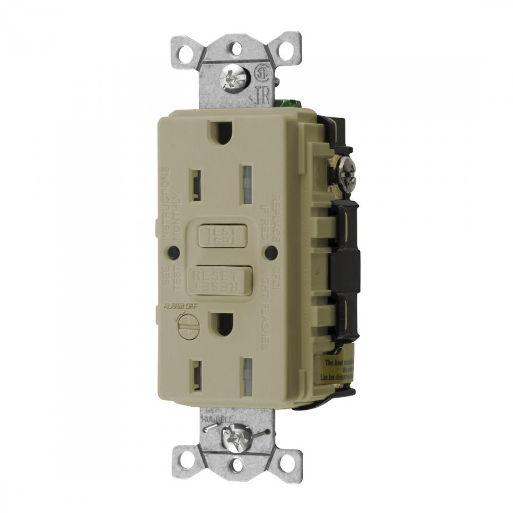 Wiring Device-Kellems AUTOGUARD® Style Line GFTRST15IB Heavy Duty Standard Self-Test Tamper Resistant GFCI Receptacle With Alarm, 125 VAC, 15 A, 2 Poles, 3 Wires, Ivory