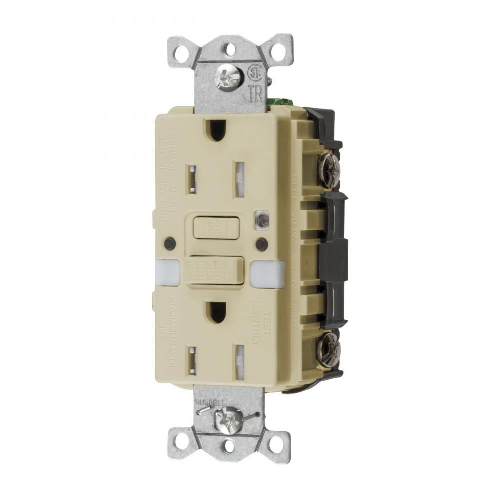 Wiring Device-Kellems AUTOGUARD® Style Line GFTRST15INL Decorator Duplex Straight Blade Self-Test Tamper Resistant Standard GFCI Receptacle With Two LED Nightlight, 125 VAC, 15 A, 2 Poles, 3 Wires, Ivory