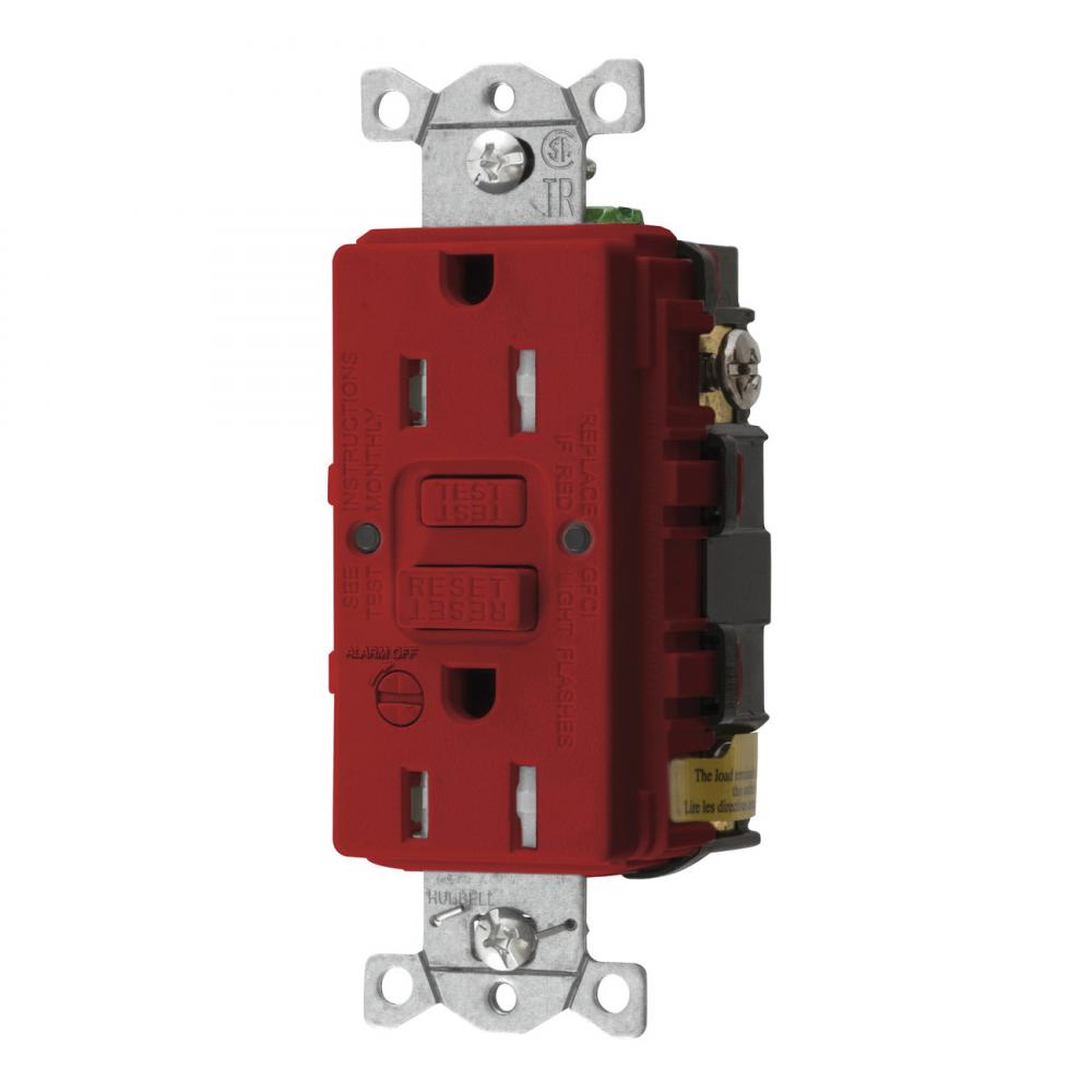 Wiring Device-Kellems AUTOGUARD® Style Line GFTRST15RB Heavy Duty Standard Self-Test Tamper Resistant GFCI Receptacle With Alarm, 125 VAC, 15 A, 2 Poles, 3 Wires, Red