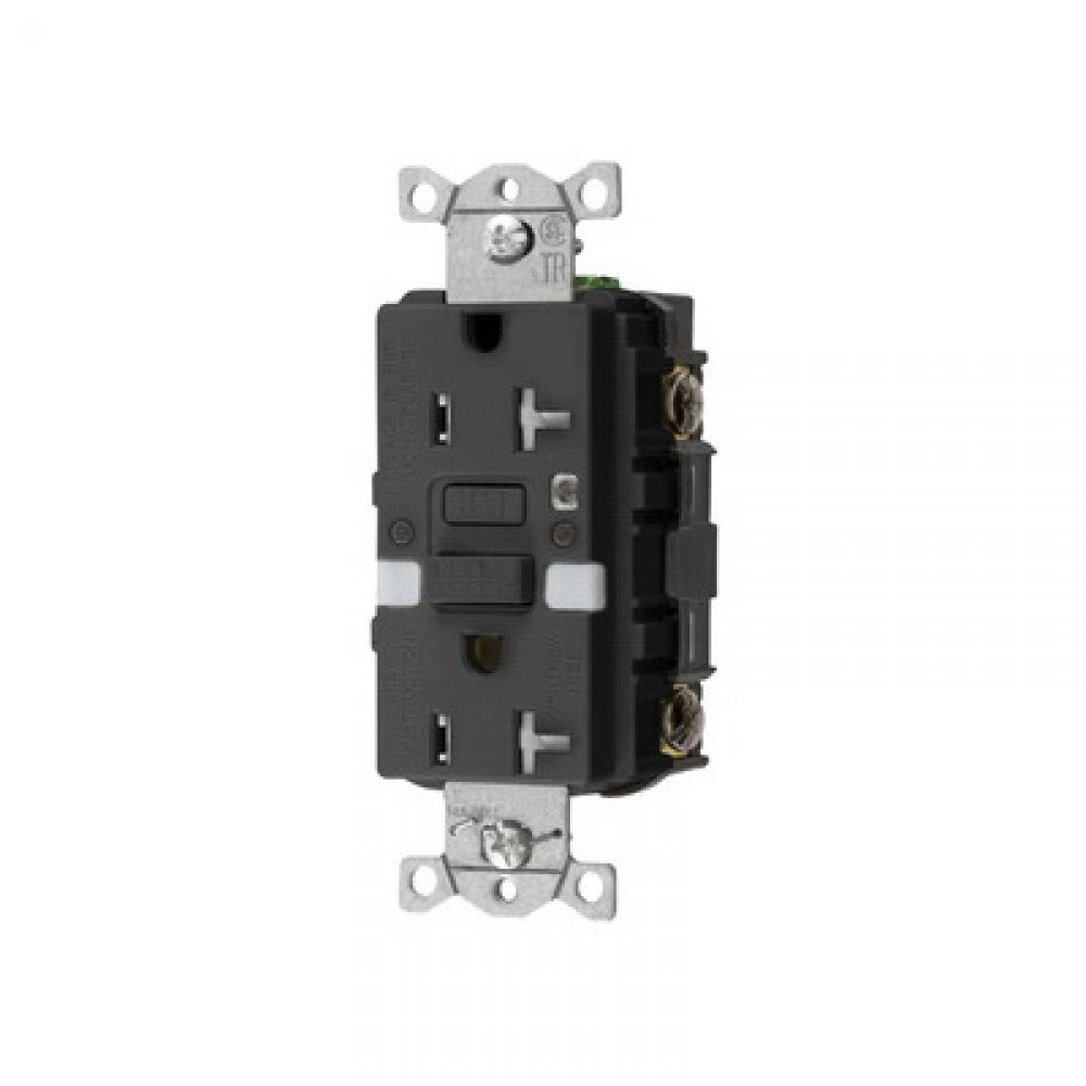 Wiring Device-Kellems AUTOGUARD® Style Line GFTRST20BKNL Decorator Duplex Straight Blade Self-Test Tamper Resistant GFCI Receptacle With Two LED Nightlight, 125 VAC, 20 A, 2 Poles, 3 Wires, Black