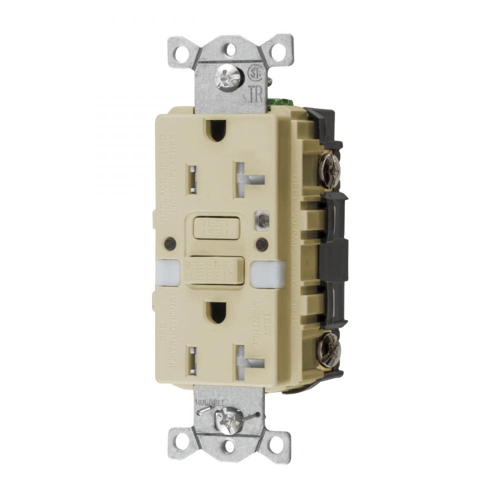 Wiring Device-Kellems AUTOGUARD® Style Line GFTRST20INL Decorator Duplex Straight Blade Self-Test Tamper Resistant Standard GFCI Receptacle With Two LED Nightlight, 125 VAC, 20 A, 2 Poles, 3 Wires, Ivory