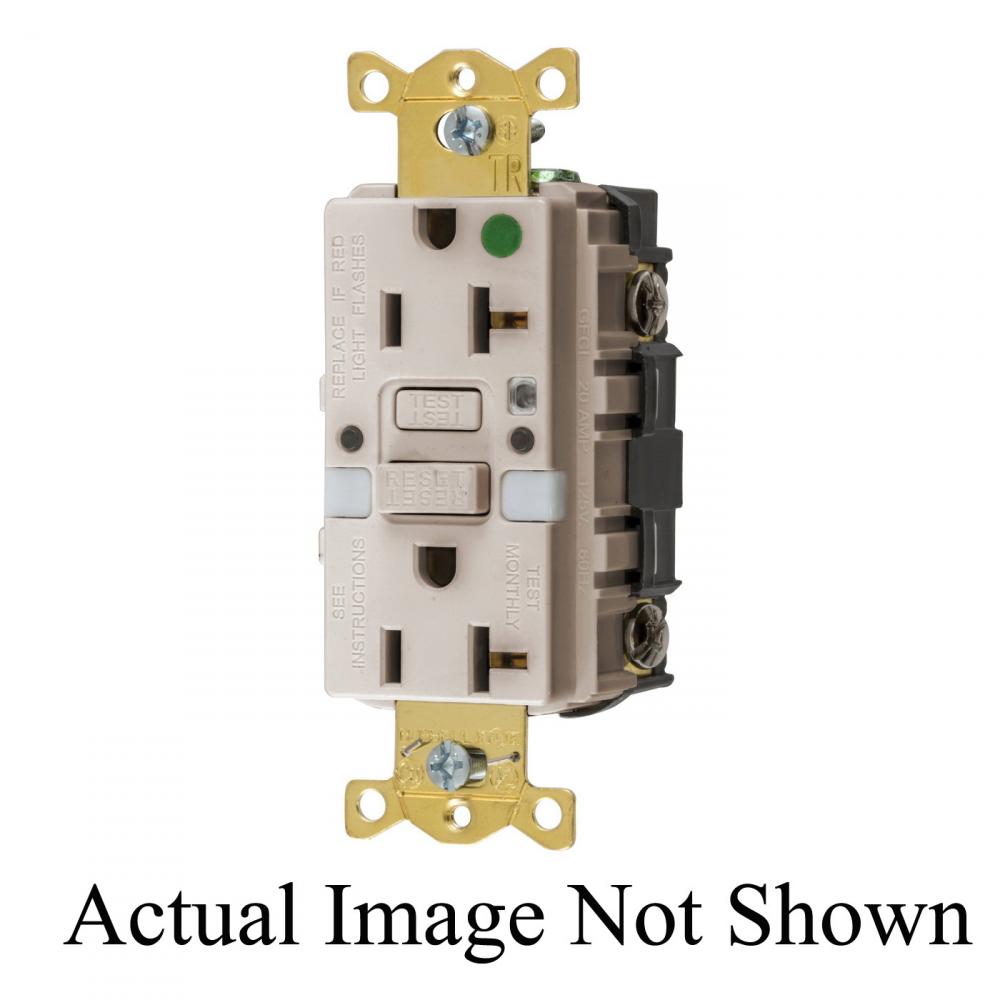 Wiring Device-Kellems AUTOGUARD® Style Line GFTRST83LANL Straight Blade Self-Test Tamper Resistant Standard GFCI Receptacle With Two LED Nightlight, 125 VAC, 20 A, 2 Poles, 3 Wires, Light Almond