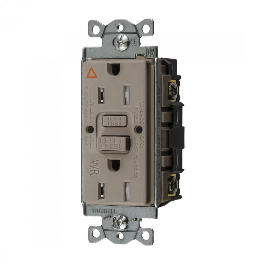 Wiring Device-Kellems AUTOGUARD® Style Line GFTWRST15ALIG Decorator Duplex Heavy Duty Self-Test Isolated Ground Tamper/Weather Resistant GFCI Receptacle, 125 VAC, 15 A, 2 Poles, 3 Wires, Almond