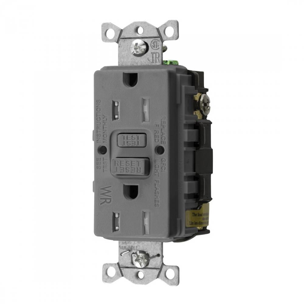 Wiring Device-Kellems AUTOGUARD® Style Line GFTWRST15GYU Decorator Duplex Heavy Duty Self-Test Straight Blade Tamper/Weather Resistant GFCI Receptacle, 125 VAC, 15 A, 2 Poles, 3 Wires, Gray