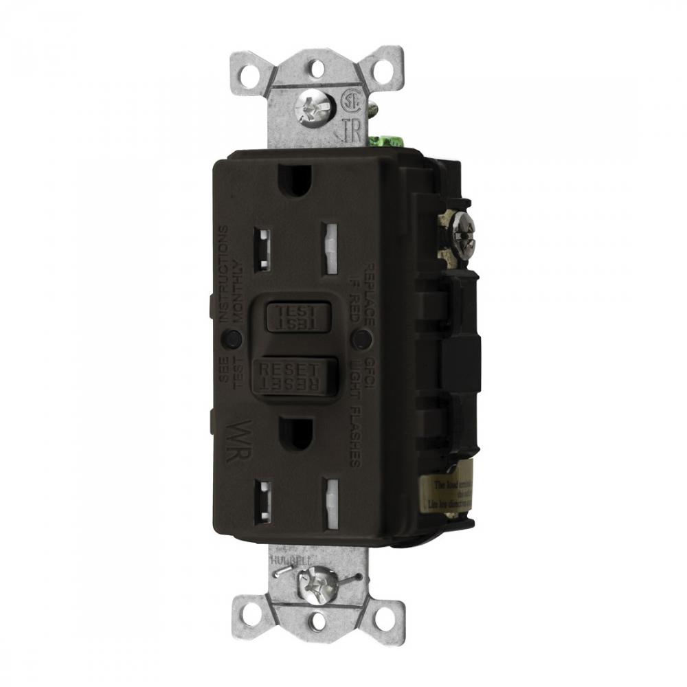 Wiring Device-Kellems AUTOGUARD® Style Line GFTWRST15U Decorator Duplex Heavy Duty Self-Test Straight Blade Tamper/Weather Resistant GFCI Receptacle, 125 VAC, 15 A, 2 Poles, 3 Wires, Brown