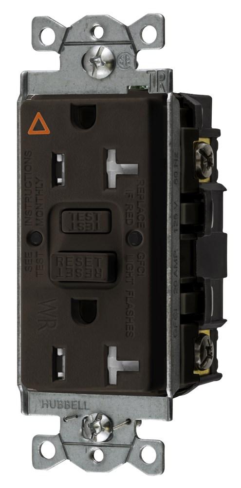 Wiring Device-Kellems GFTWRST20IG 1-Phase Decorator Duplex Standard Self-Test GFCI Receptacle, 125 VAC, 20 A, 2 Poles, 3 Wires, Brown
