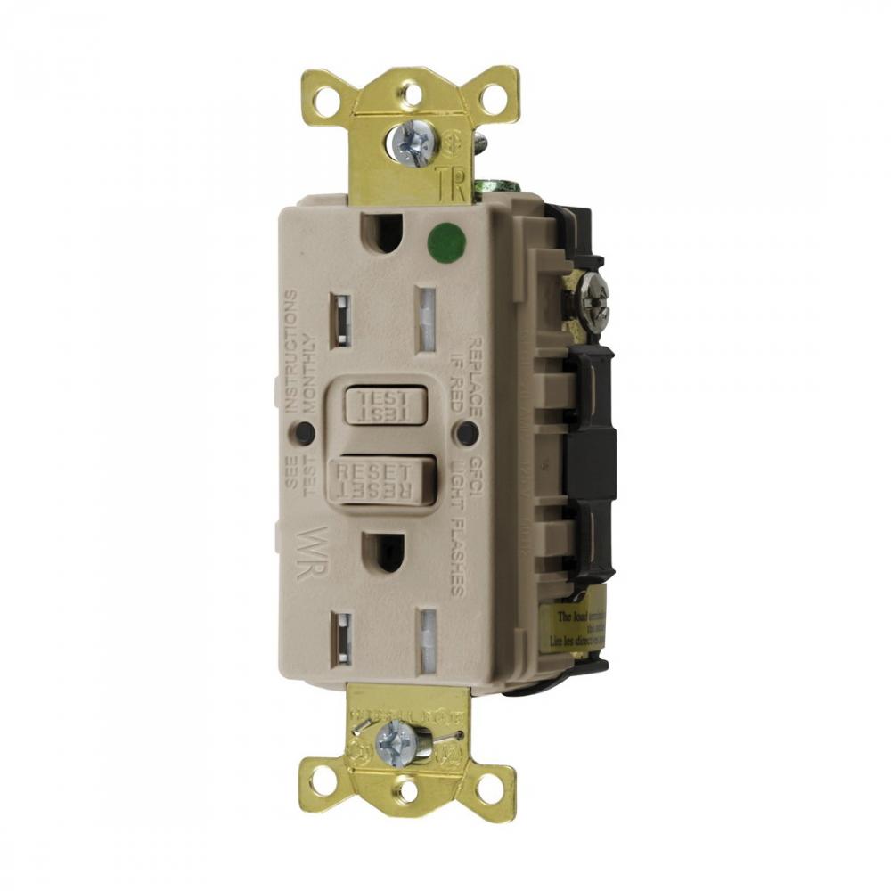Wiring Device-Kellems AUTOGUARD® Style Line GFTWRST82ALU Decorator Duplex Heavy Duty Self-Test Straight Blade Tamper/Weather Resistant GFCI Receptacle, 125 VAC, 15 A, 2 Poles, 3 Wires, Almond