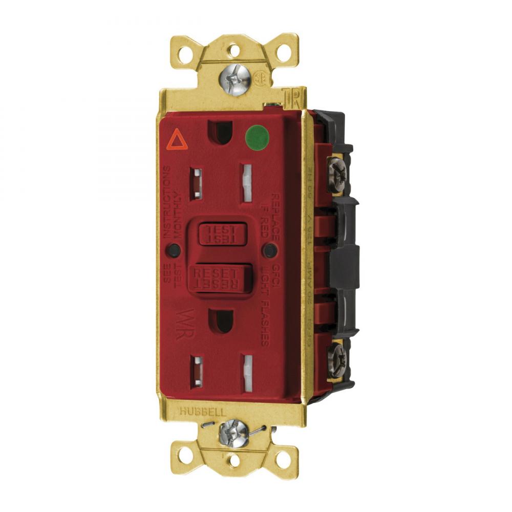 Wiring Device-Kellems AUTOGUARD® Style Line GFTWRST82RIG Decorator Duplex Heavy Duty Self-Test Straight Blade Isolated Ground Tamper/Weather Resistant GFCI Receptacle, 125 VAC, 15 A, 2 Poles, 3 Wires, Red