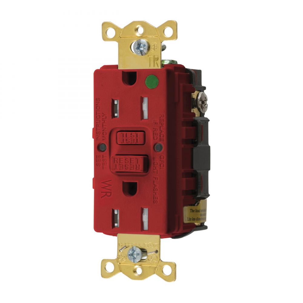 Wiring Device-Kellems AUTOGUARD® Style Line GFTWRST82RU Decorator Duplex Heavy Duty Self-Test Straight Blade Tamper/Weather Resistant GFCI Receptacle, 125 VAC, 15 A, 2 Poles, 3 Wires, Red