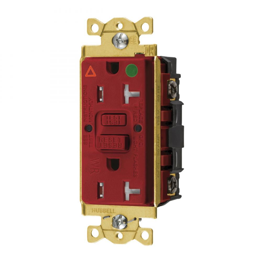 Wiring Device-Kellems AUTOGUARD® Style Line GFTWRST83RIG Decorator Duplex Heavy Duty Standard Straight Blade Self-Test Isolated Ground Tamper/Weather Resistant GFCI Receptacle, 125 VAC, 20 A, 2 Poles, 3 Wires, Red