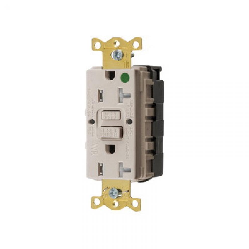 Wiring Device-Kellems SNAPConnect® StyleLine® GFTWRST83SNAPLA Decorator Duplex Heavy Duty Self-Test Straight Blade Tamper/Weather Resistant GFCI Receptacle, 125 VAC, 20 A, 2 Poles, 3 Wires, Light Almond