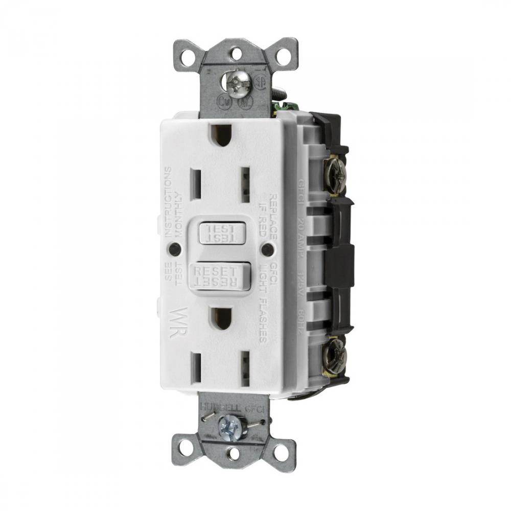Wiring Device-Kellems AUTOGUARD® Style Line GFWRST15W Decorator Duplex Heavy Duty Standard Self-Test Weather Resistant GFCI Receptacle, 125 VAC, 15 A, 2 Poles, 3 Wires, White