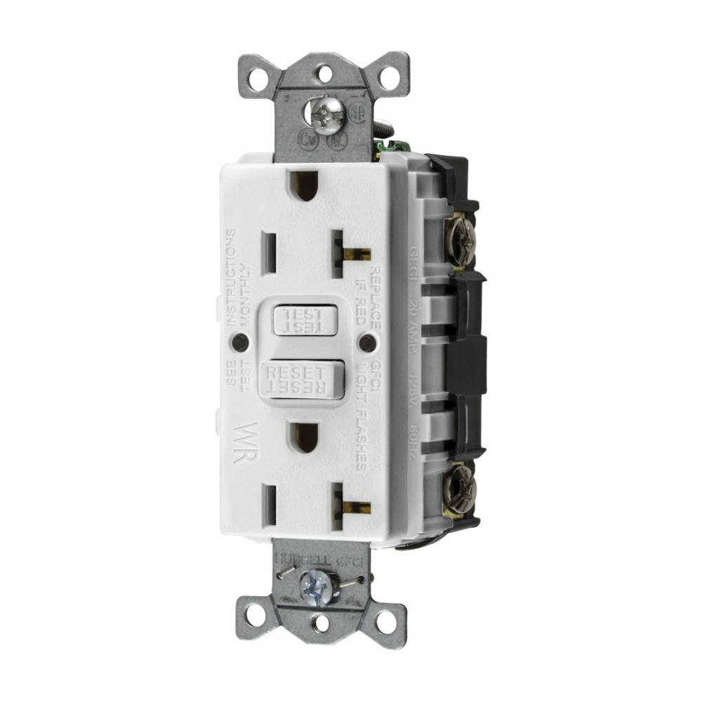 Wiring Device-Kellems AUTOGUARD® Style Line GFWRST20W Decorator Duplex Heavy Duty Standard Self-Test Weather Resistant GFCI Receptacle, 125 VAC, 20 A, 2 Poles, 3 Wires, White