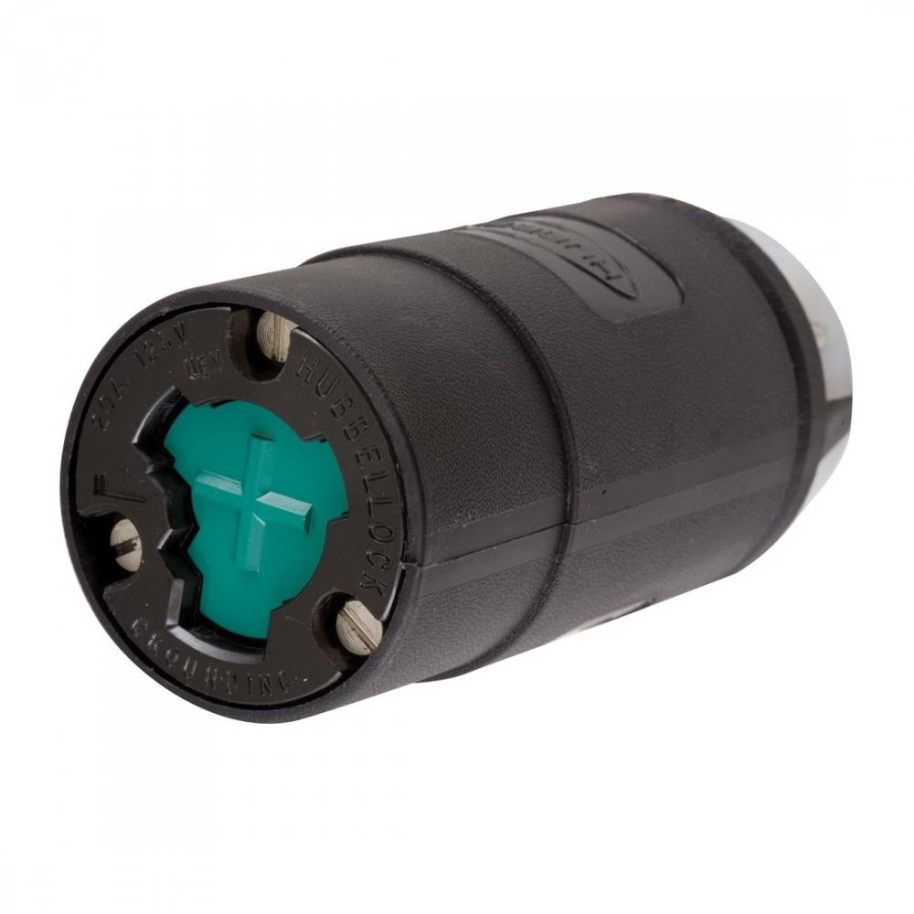 Wiring Device-Kellems Hubbellock® HBL23032B Grounding Locking Connector, 125 VAC, 20 A, 2 Poles, 3 Wires, Black