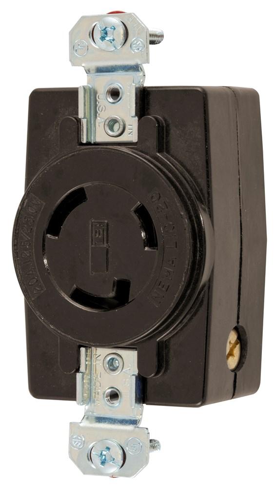 Wiring Device-Kellems Twist-Lock® HBL2360 1-Phase Non-Grounding Standard Locking Receptacle, 125/250 VAC, 20 A, 3 Poles, 3 Wires, Black