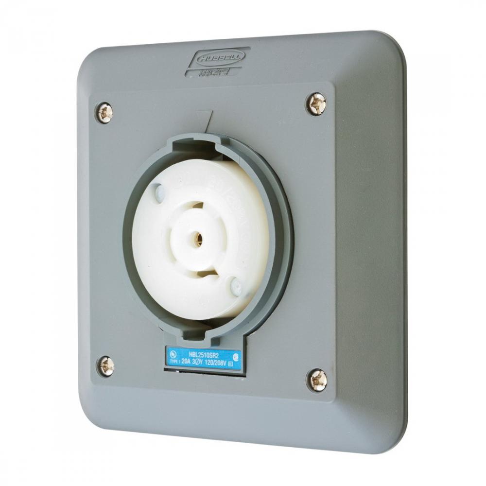 Hubbell® Twist-Lock® Safety-Shroud® HBL2510SR2 2-Gang Shrouded Single Locking Receptacle, 120/208 VAC, 20 A, 4 Poles, 5 Wires, Gray
