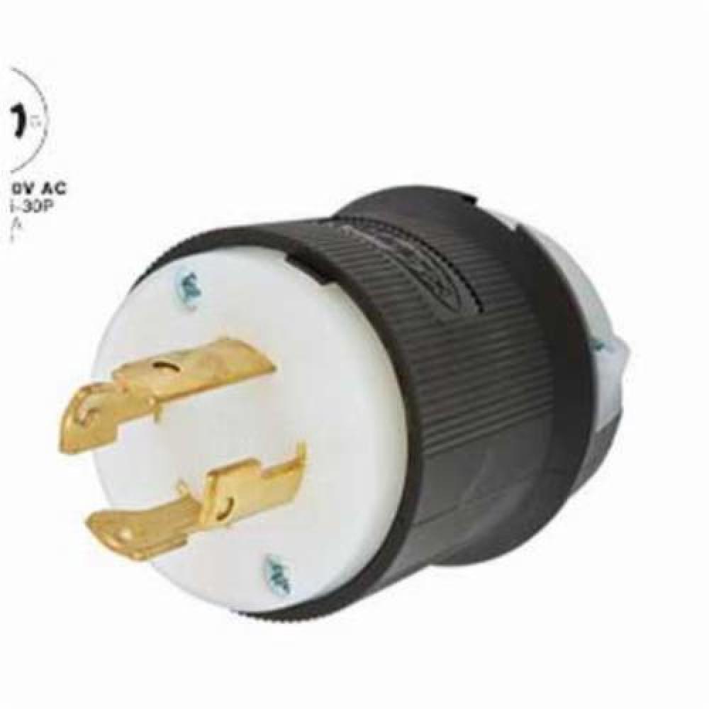 Wiring Device-Kellems Twist-Lock® Insulgrip® HBL2731 Grounding Locking Plug, 480 VAC, 30 A, 3 Poles, 4 Wires, Black/White